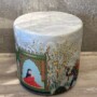 - Raşel döşemelik kumaş ile kaplanmış bu yuvarlak puf, Hint Düğünü desenlerinin zarif detayları ve bohem tarzının rahatlığıyla mükemmel bir uyum içinde.