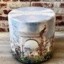 • Raşel döşemelik kumaş ile kaplanmış bu yuvarlak puf, Rönesans desenlerinin zarif detayları ve bohem tarzının rahatlığıyla mükemmel bir uyum içinde.